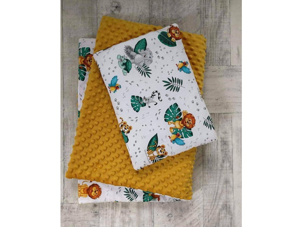 Oboustranná deka s polštářem a antialergickou výplní uvnitř je nejlepším přítelem dítěte. Měkký a jemný na dotek, je ideální pro kontakt s jemnou pokožkou dítěte. Vysoce kvalitní bavlna na jedné straně a měkká MINKY na straně druhé.