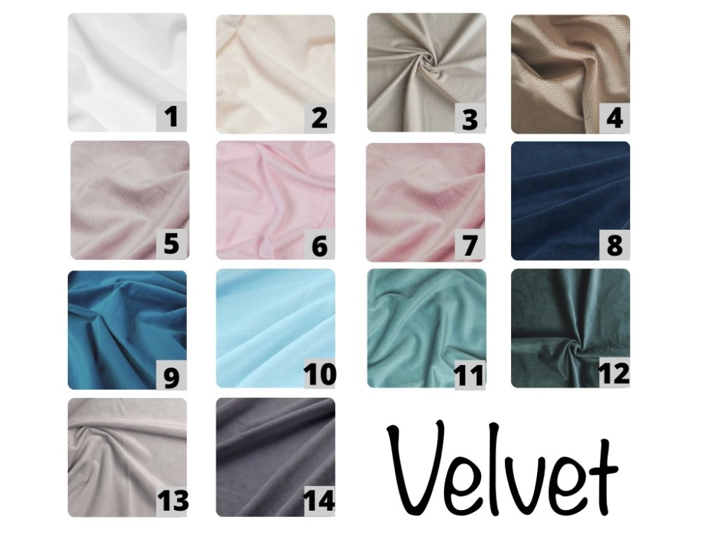 Materiál - nádherně heboučký velvet - forma minky, velmi kvalitní, z druhé strany pak 100% bavlna. Výplň - duté vlákno - sylizovaná forma dutého vlákna, která se po vyprání dá krásně načechrat zpět do své původní podoby. Materiál - s atestem pro děti do 3 let.