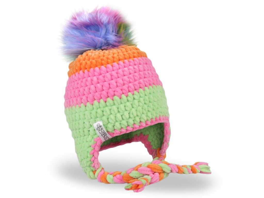 Háčkovaná ušanka z prvotřídní přízně Dolphin Baby která nekouše a je příjemná i při dlouhodobém nošení.